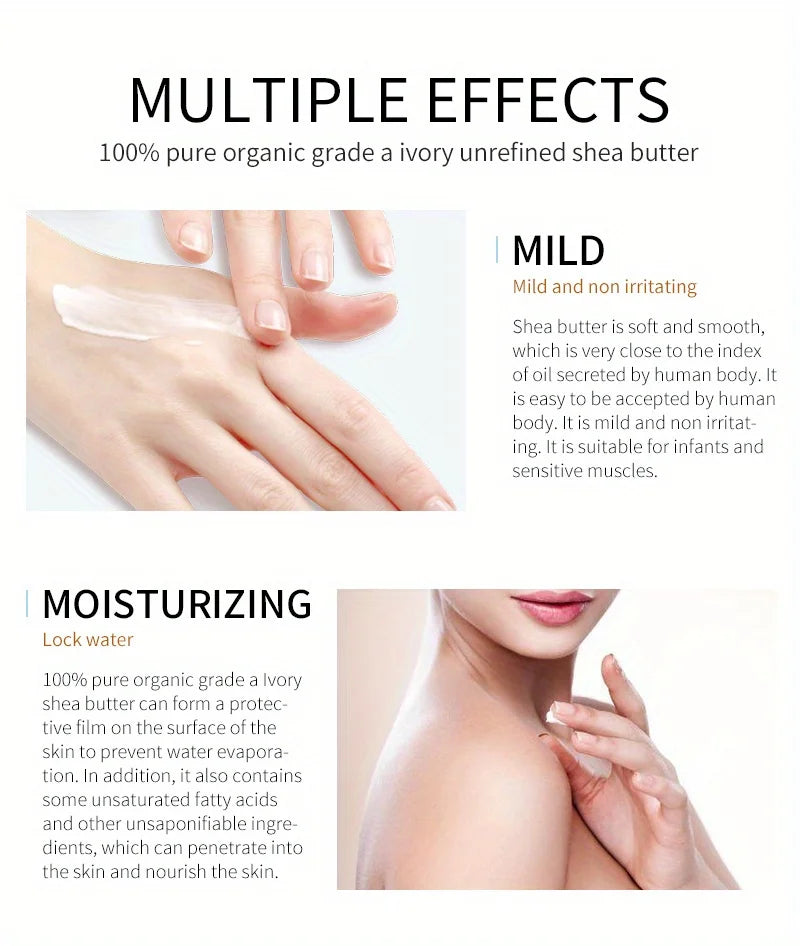 MELAO Organic Shea Butter for Body & Face Organic , 100% Raw & Unrefined to Soften, Smooth & Boost Radiance